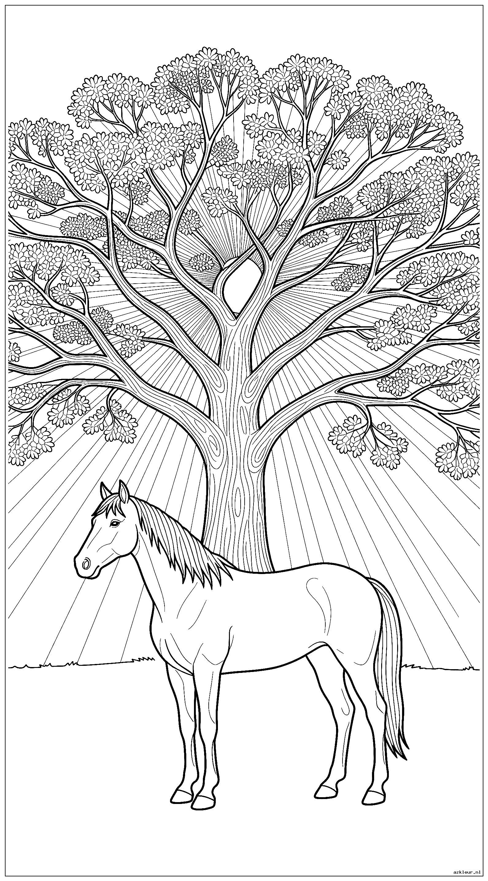 Ontdek de serene schoonheid van paarden in hun natuurlijke omgeving met deze sfeervolle kleurplaten. Van een grazend paard in een weids weiland tot rustende paarden in een prachtig natuurlandschap, deze serie brengt de harmonie tussen natuur en dier perfect in beeld. Voor nog meer landelijke taferelen, bekijk ook onze kleurplaat met een paard en een boerderij.