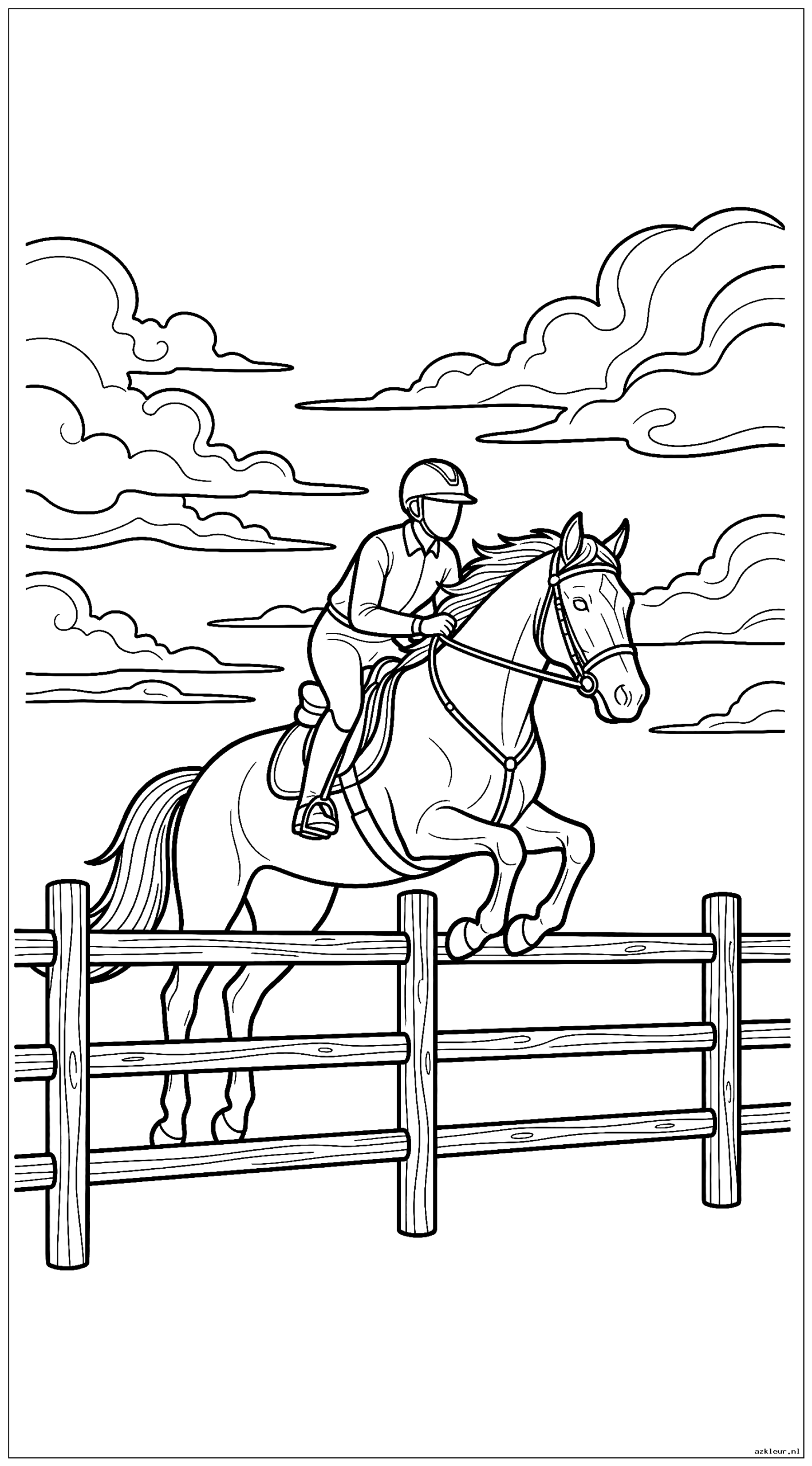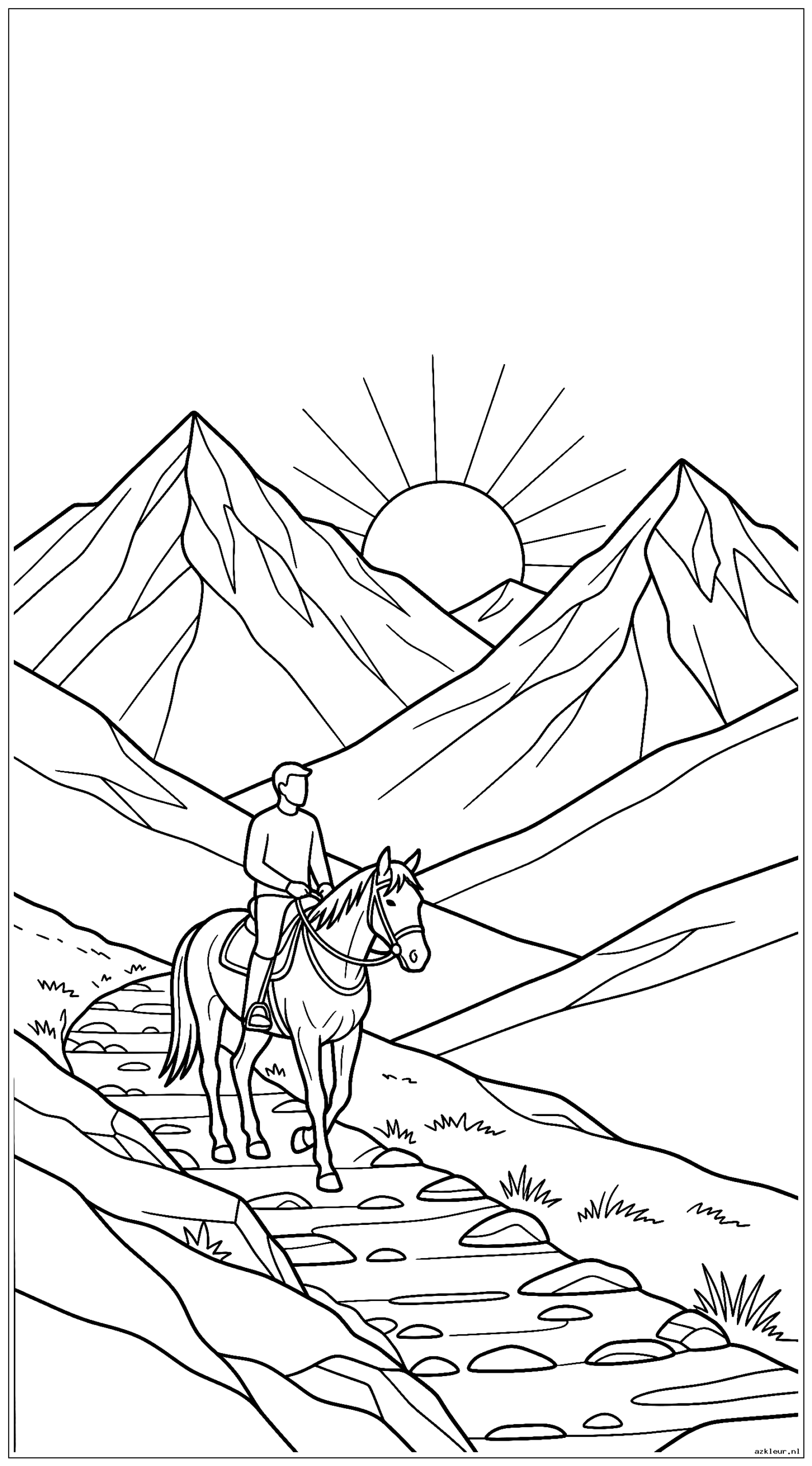 Deze romantische collectie toont de bijzondere band tussen mens en paard in het magische licht van de ondergaande zon. Of je nu droomt van paardrijden langs het strand of een rustige buitenrit, deze kleurplaat met ruiter en paard series brengt deze dromen tot leven. Elke tekening vangt het perfecte moment waarop een ruiter en paard één worden tegen een kleurrijke avondhemel.