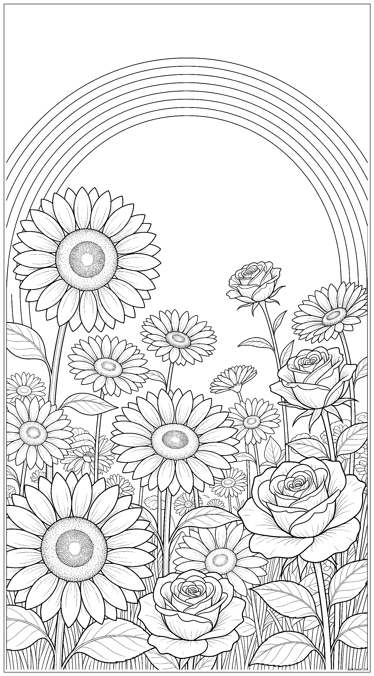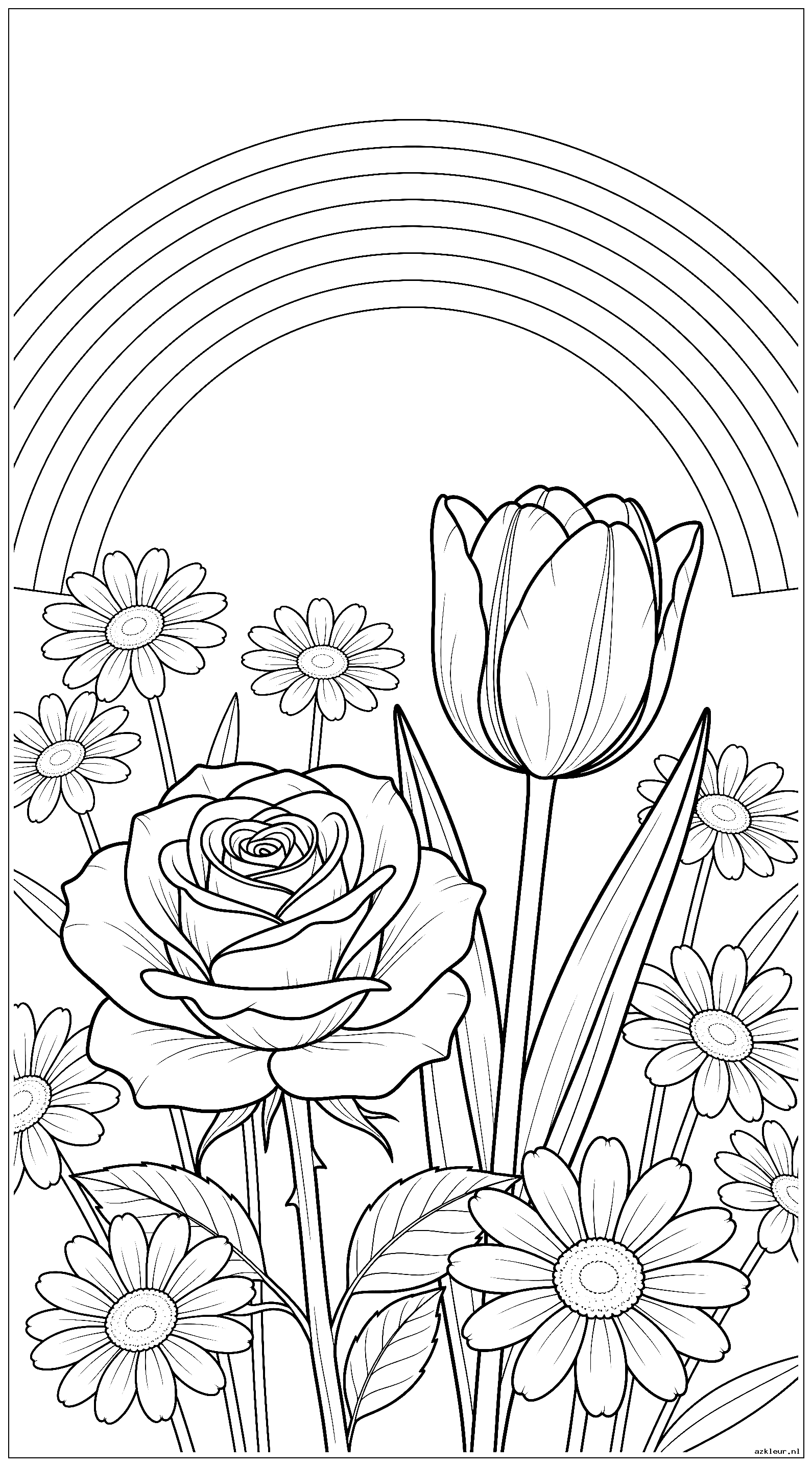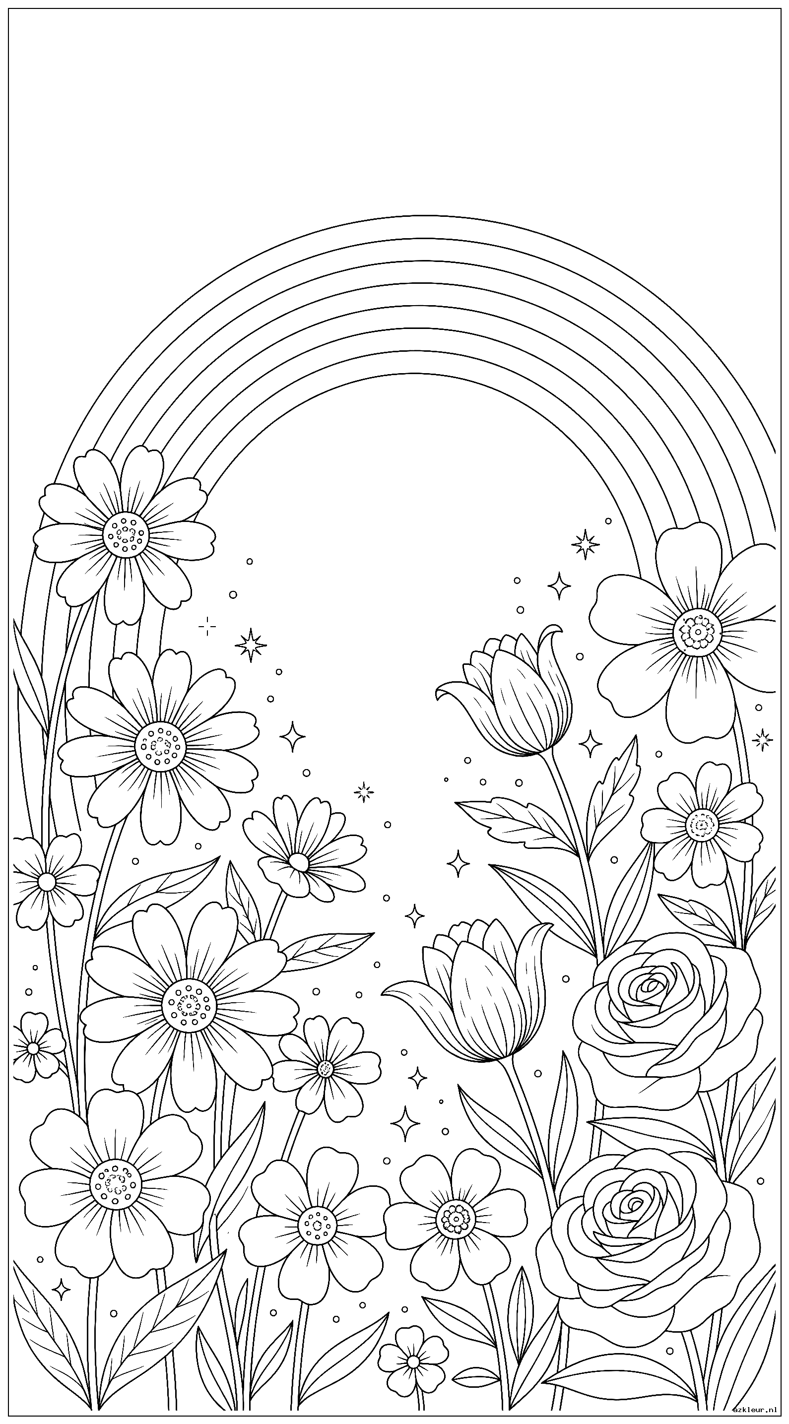Voor de gevorderde kleurders bieden we natuurlijke bloemen kleurplaten met veel detail. Deze botanische tekeningen zijn gebaseerd op echte bloemensoorten en bevatten een gedetailleerde regenboog die de compositie compleet maakt. Perfect voor wie houdt van natuurgetrouw kleuren.