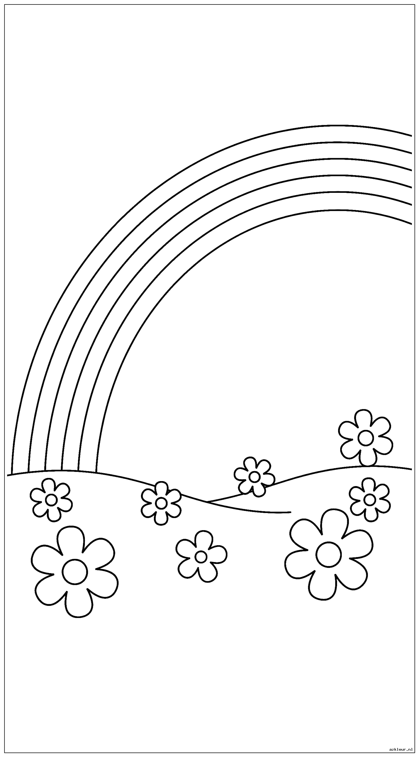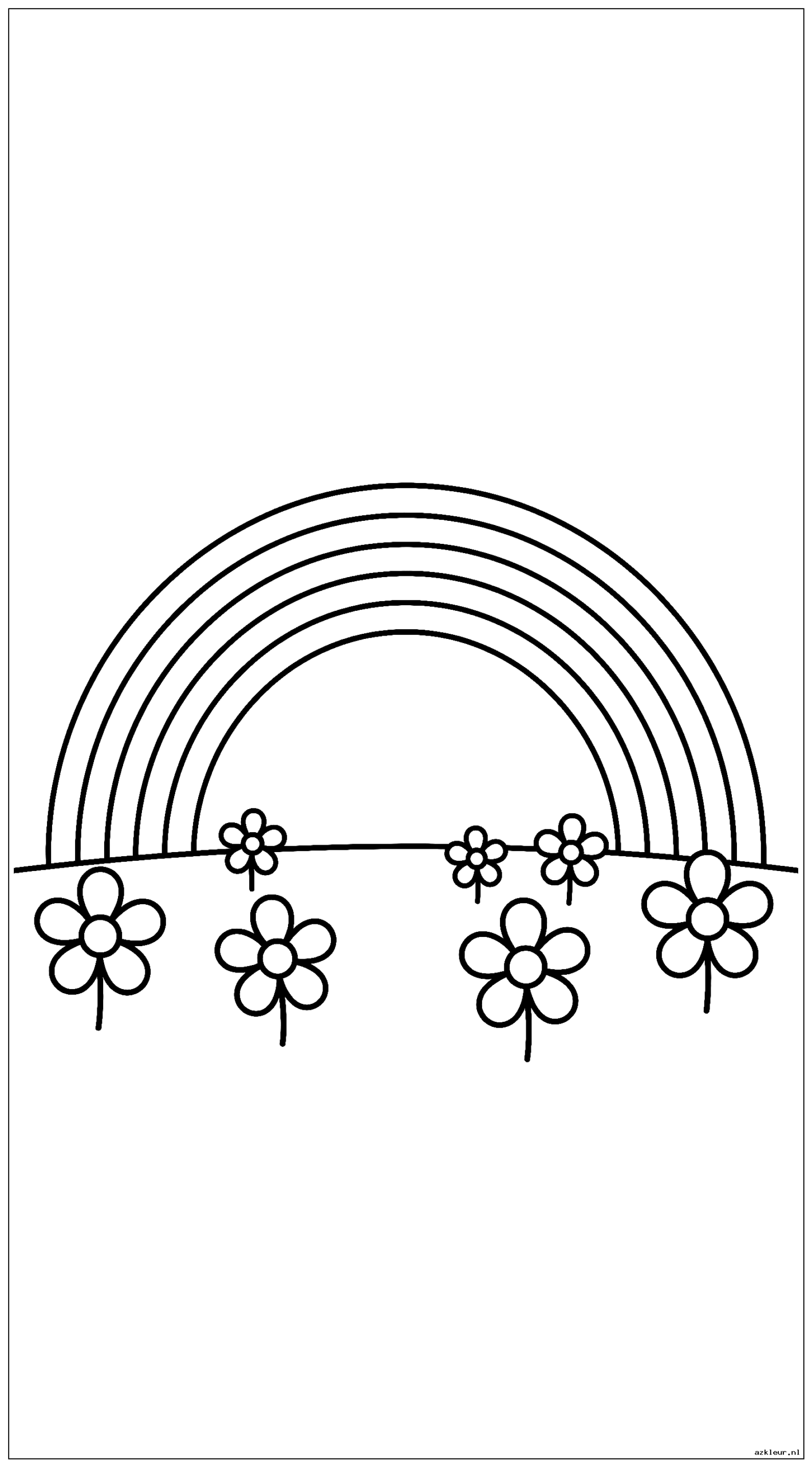 Eenvoudige Regenboog met Bloemen Kleurplaten
