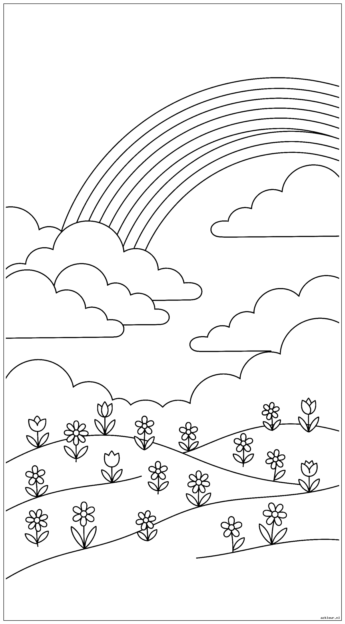 Regenboog met Wolken en Bloemen