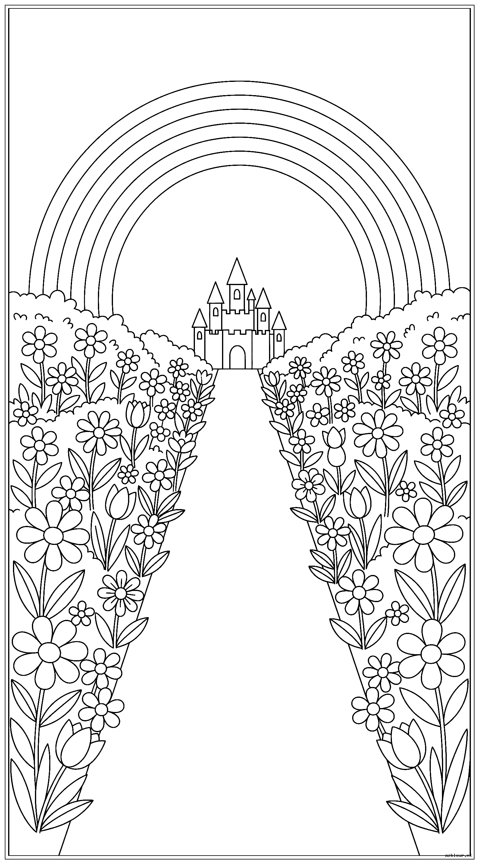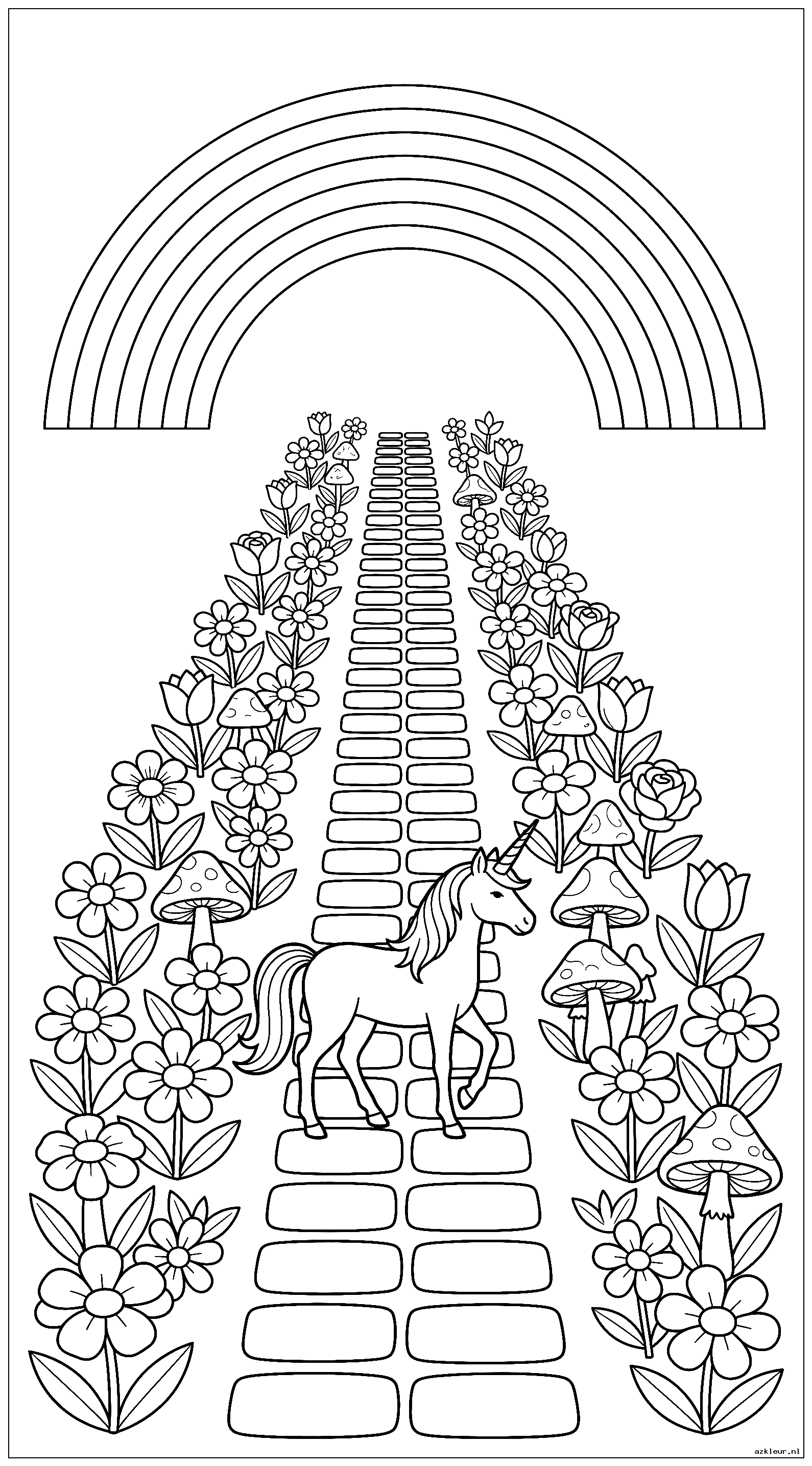 Stap in een wereld vol verwondering met onze fantasie tuin kleurplaten. Deze kleurplaat regenboog prinses collectie bevat betoverende scenes met magische bloemen en sprookjesachtige elementen. Laat je fantasie de vrije loop in deze wonderlijke tuinen waar alles mogelijk is.