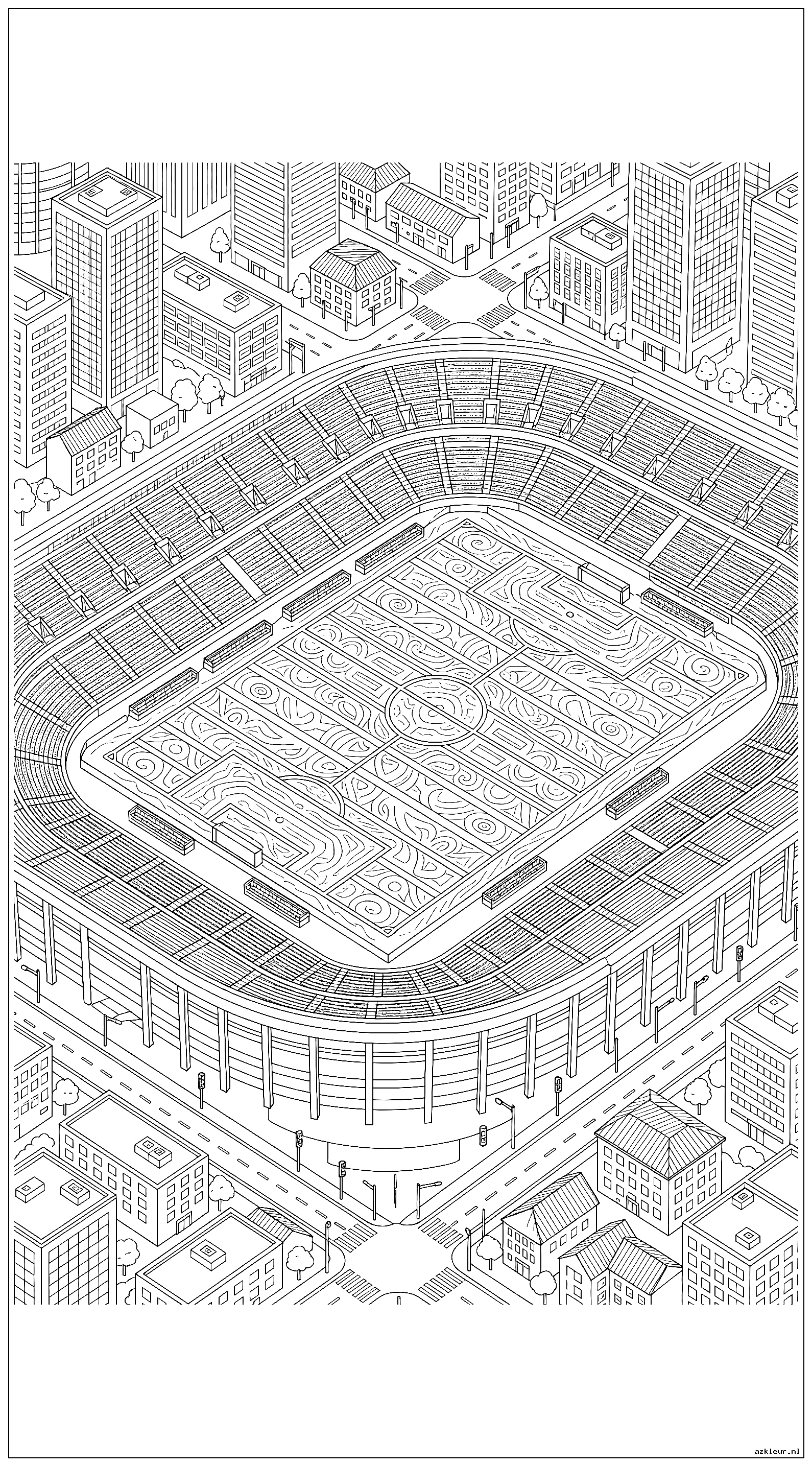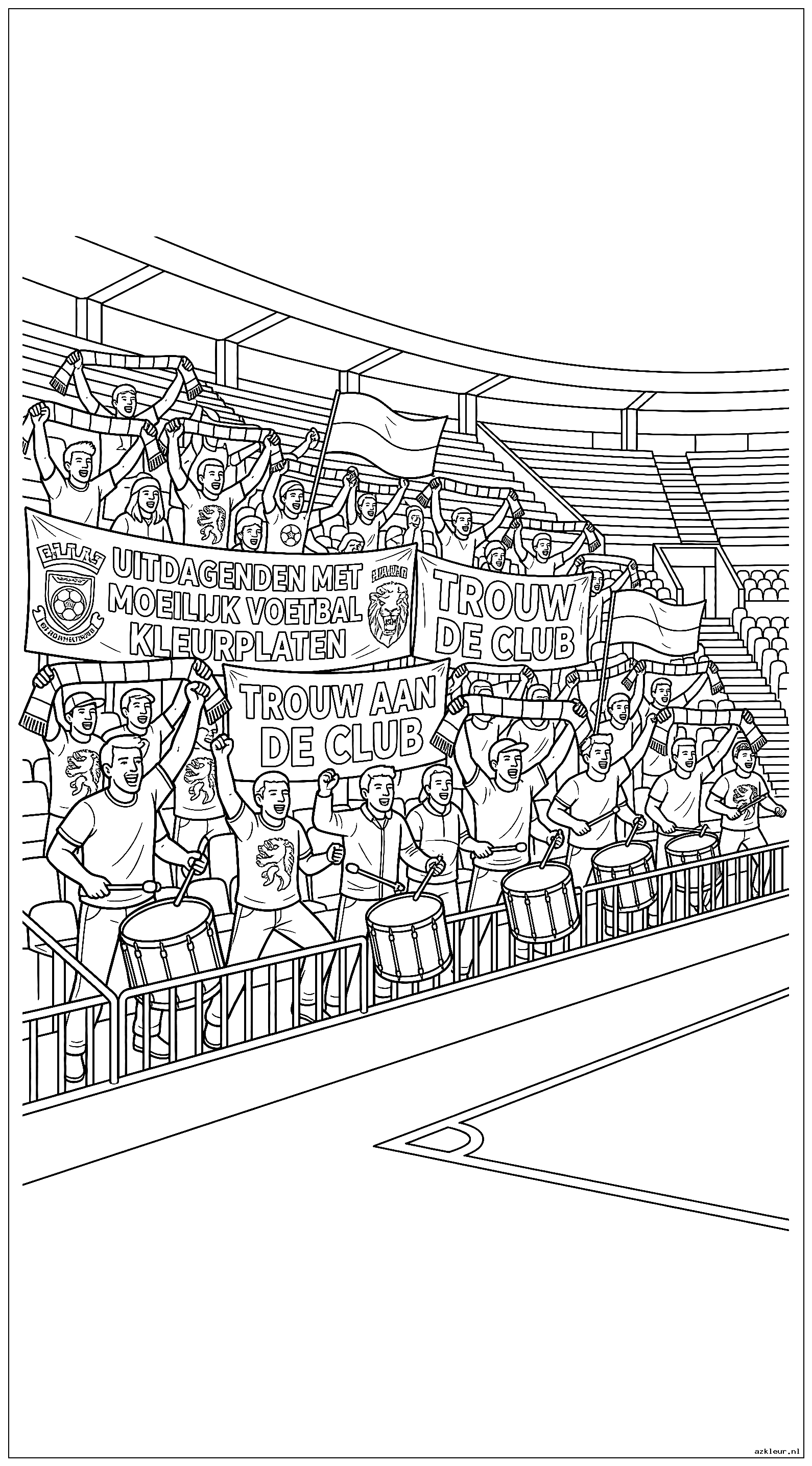 Voor de echte uitdaging bieden we intricate stadionscènes aan. Deze kleurplaten bevatten minutieuze details van beroemde voetbaltempels, complete met juichende supporters op de tribunes, wapperende vlaggen en indrukwekkende architectuur. Deze complexe tekeningen zijn perfect voor wie houdt van precisiewerk en geduld heeft voor kleine details.